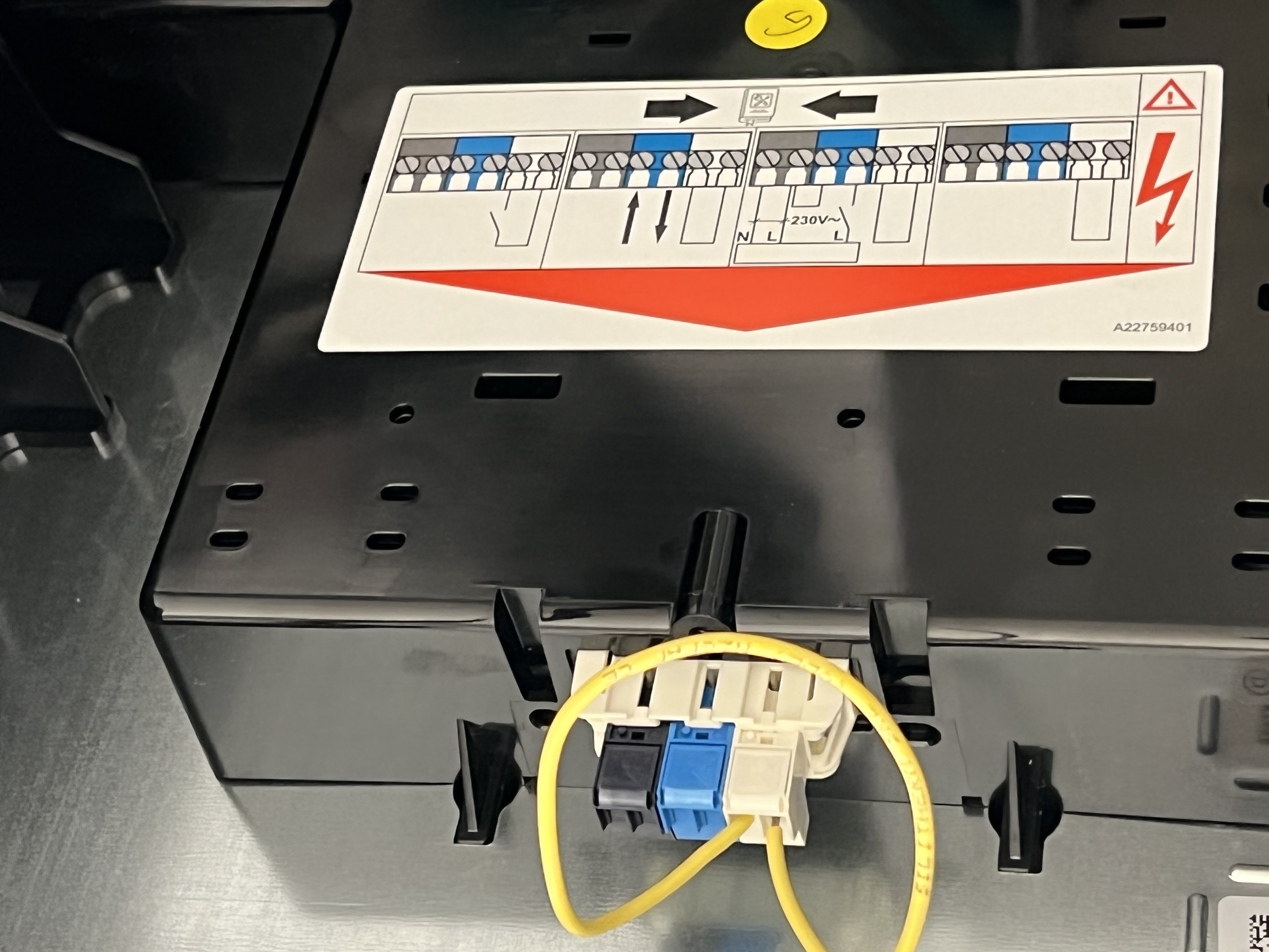 Som vist i din installationsvejledning, skal der skal være monteret en "lus" eller en stump ledning i det hvide stik for at, emhætten kan køre.