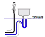 Her et eksempel på en god vandlås med bi den udluftede del af afløbet, over vandstanden i vandlåsen:
