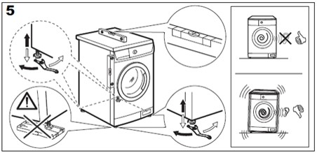 - Hvis maskinen er placeret på ekstra gummi fødder, kan disse fjernes og derefter afprøve maskinen igen.
