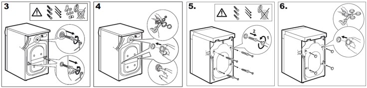 I eller installationsvejledning der fulgte med maskinen, kan du se hvordan de fjernes. Se her eksempler med 3 eller 4 transportbolte: