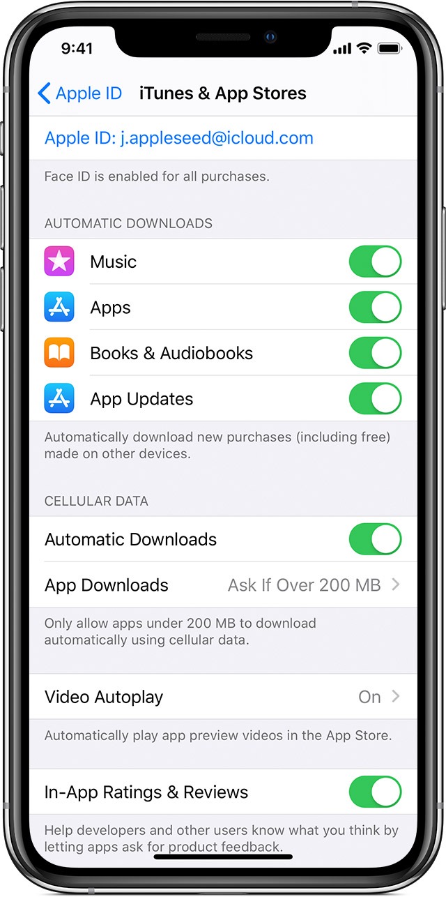 - På din iPhone, iPad eller iPod touch: Gå til Indstillinger > [dit navn] > iTunes & App Store. Slå derefter Appopdateringer til eller fra.