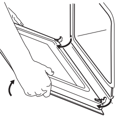 - Drej klips på hængsler ved bunden af ovndøren