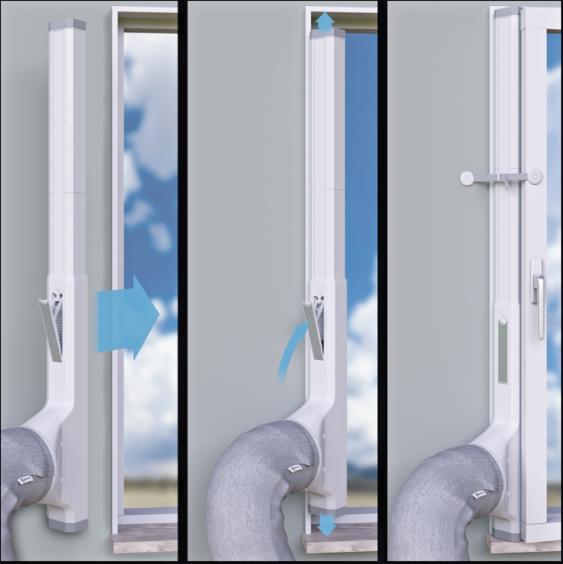 Du kan nemt tilslutte dit mobile klimaanlæg til et vindue med som du kan købe vores .