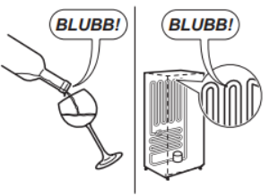 Regelmæssig bankelyd 2-3 gange i sekundet ved afkøling. Disse er normale indsprøjtningslyde fra det kølemiddel, der er i gasfasen i fordamperen (indvendigt på bagvæggen). Da den nye, miljøvenlige type kølemiddel (R600a) er lettere og har en lavere massefylde, skal en større mængde heraf anvendes og cirkuleres. Dette kan medføre, at disse driftslyde er meget forskellige fra driftslydene i et tidligere produkt.