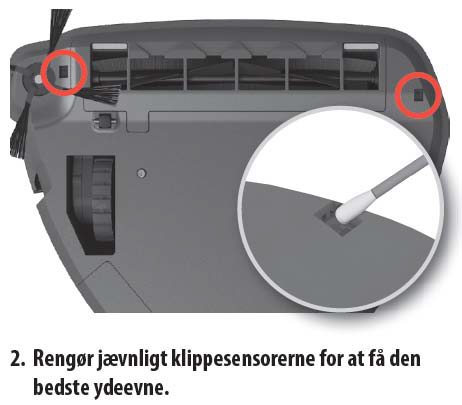 Dette kan i få tilfælde få klippesensorerne til at tro at robotten står på en afsats og derfor ikke vil fortsætte ud over den.