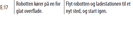 - Min robotstøvsuger viser fejlkode E17 i displayet