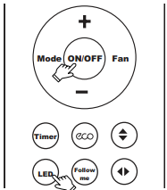 Tænd for varmepumpen og tryk derefter på “LED” knap 7 gange på 10 sekunder på fjernbetjeningen.