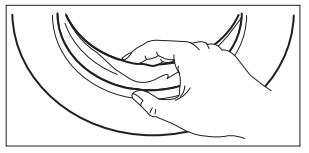 - Tøj, der har sat sig fast mellem lugetætningen og glasset, kan gøre maskinen utæt og få vandet til at løbe ned fortil og ind i bundbakken på maskinen.